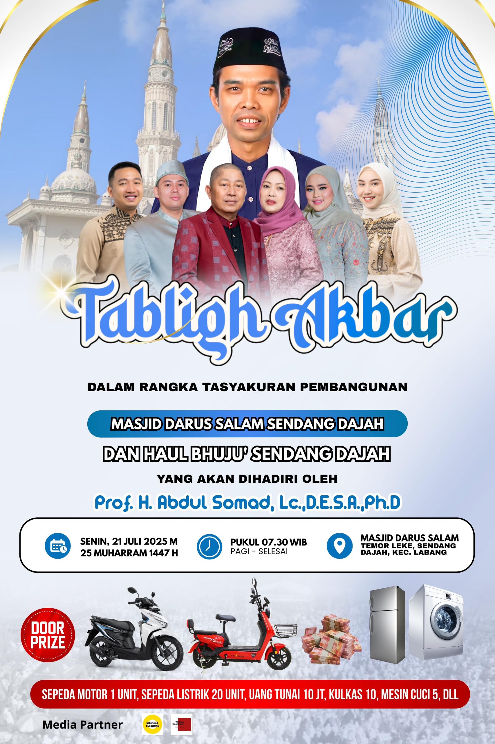 Kegiatan ini dijadwalkan dimulai pukul 07.30 WIB dan akan berlangsung hingga selesai. Selain kajian keagamaan, acara ini juga dimeriahkan dengan pembagian doorprize kepada peserta yang hadir, dengan hadiah utama berupa 1 unit sepeda motor, 20 unit sepeda listrik, uang tunai senilai Rp10 juta, serta berbagai peralatan elektronik rumah tangga seperti kulkas dan mesin cuci, dan hadiah menarik lainnya.
